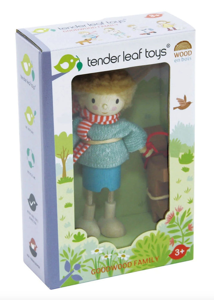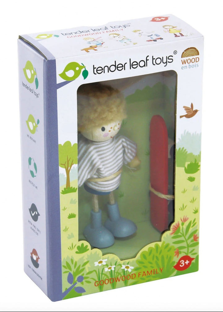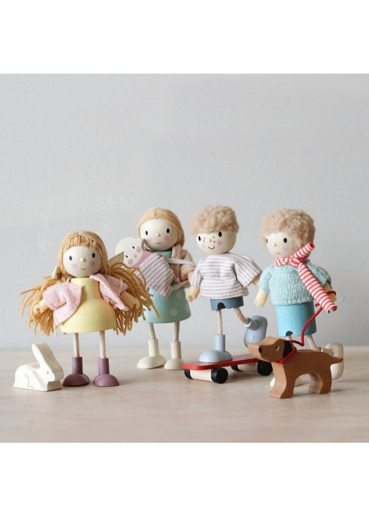 Mrs Goodwood with her new baby, Mr Goodwood with his trusty pet dog and their children , Amy & Edward who love playing with their pet rabbit and skateboard. All made from solid wood with beautiful clothing from jersey knit fabrics. They have bendy poseable arms and legs, to enable great fun and imaginative play.