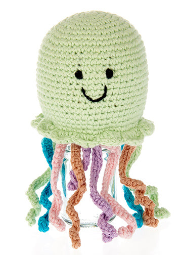 Pebble products are made entirely by hand with natural materials and as such there will be slight variations in size, colour, and design in line with the unique nature of this product. This toy has a rattle.