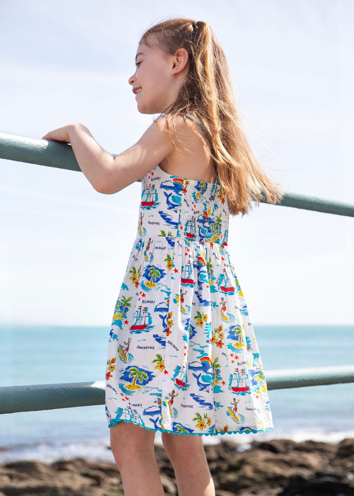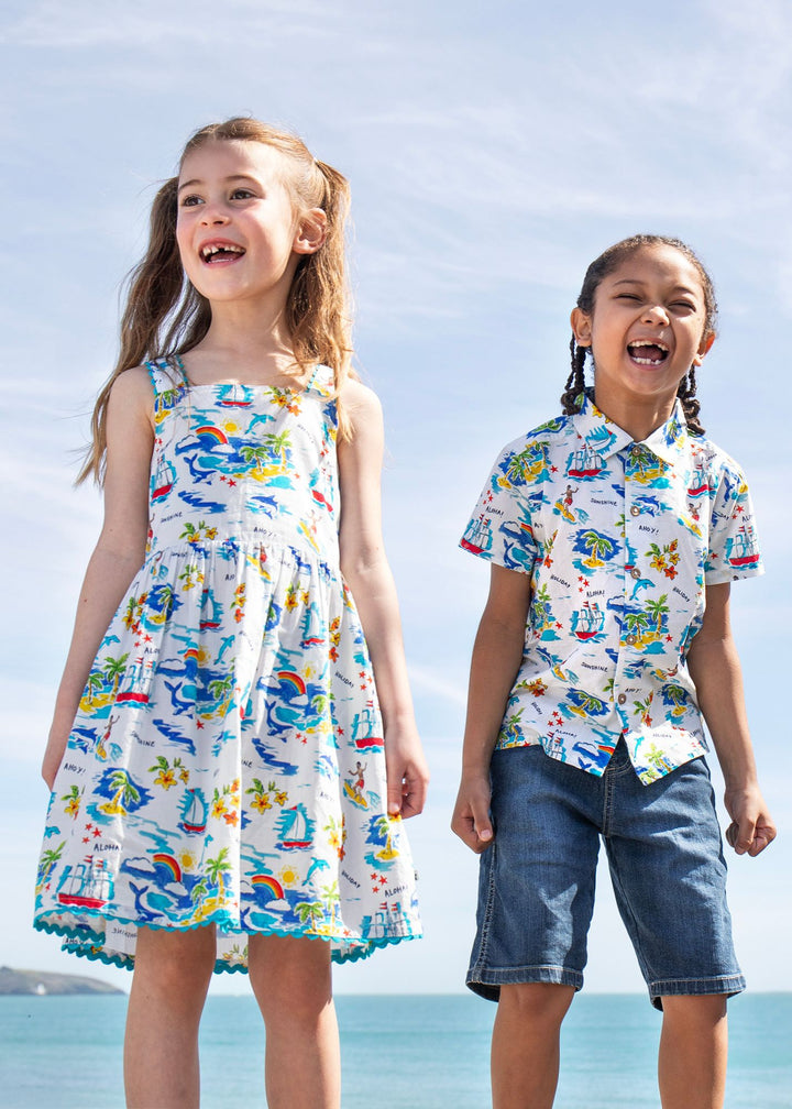 This Seraphina Dess from Frugi is made from 100% GOTS certified organic cotton in an Aloha print with a cosy lining at the top. With a fab A-line skirt, this summer dress has adjustable shoulder straps and an elasticated back for a comfy fit.
