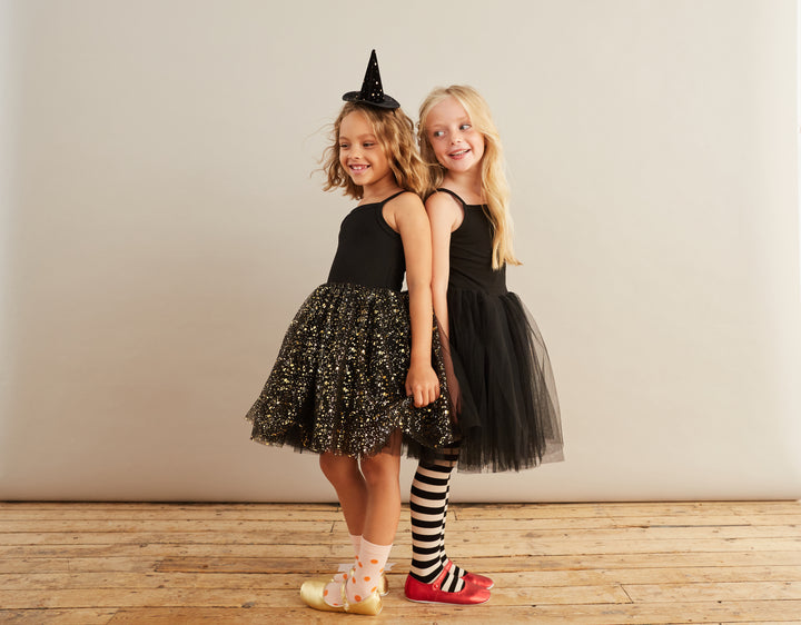 • Sparkle they’ll adore: a gold shimmer skirt that catches the light with every twirl
