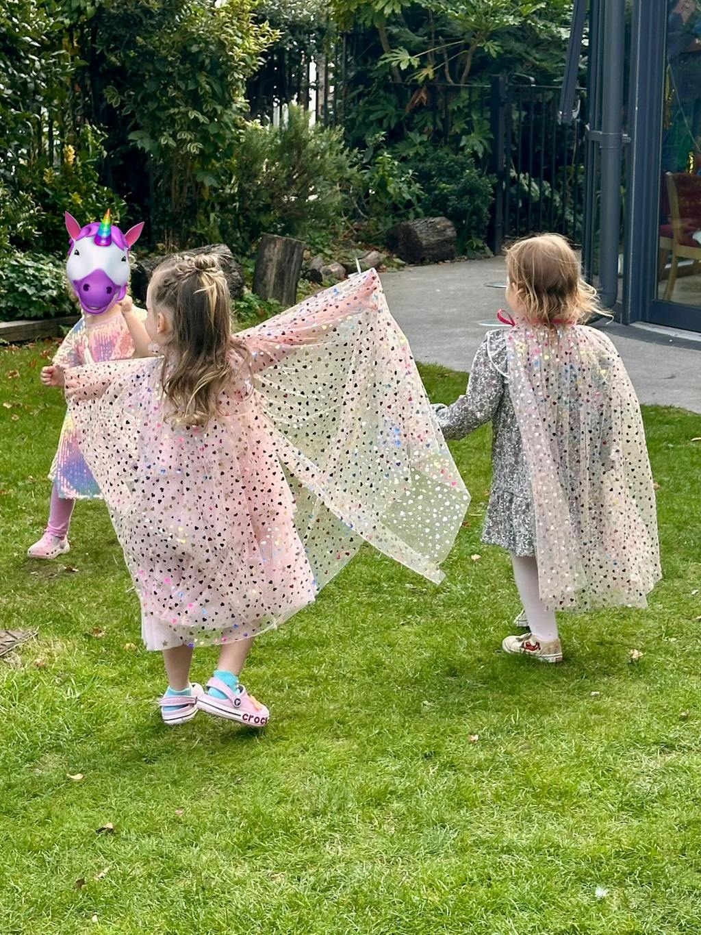 My Granddaughter’s absolutely love these gorgeous capes. They are beautifully made and quite magical in appearance. The rainbow hearts fabric matches with all of their dress-up costumes and the safety popper, instead of tie-up fastening used, means I don’t have to worry about them while they play. Perfect for Princesses, Princes, Witches and Wizards alike.