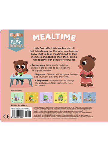 Little Crocodile, Little Monkey, and all their friends may not like to try new foods or know what to do at mealtime, but as their mommies and daddies show them, eating well together can be fun for everyone! Reassures: Shows children that mealtime is a fun time, not a chore. Supports: Children will recognize feelings and situations similar to their own. Empowers: Using pull-tabs to change the pictures, children realize they are in control.