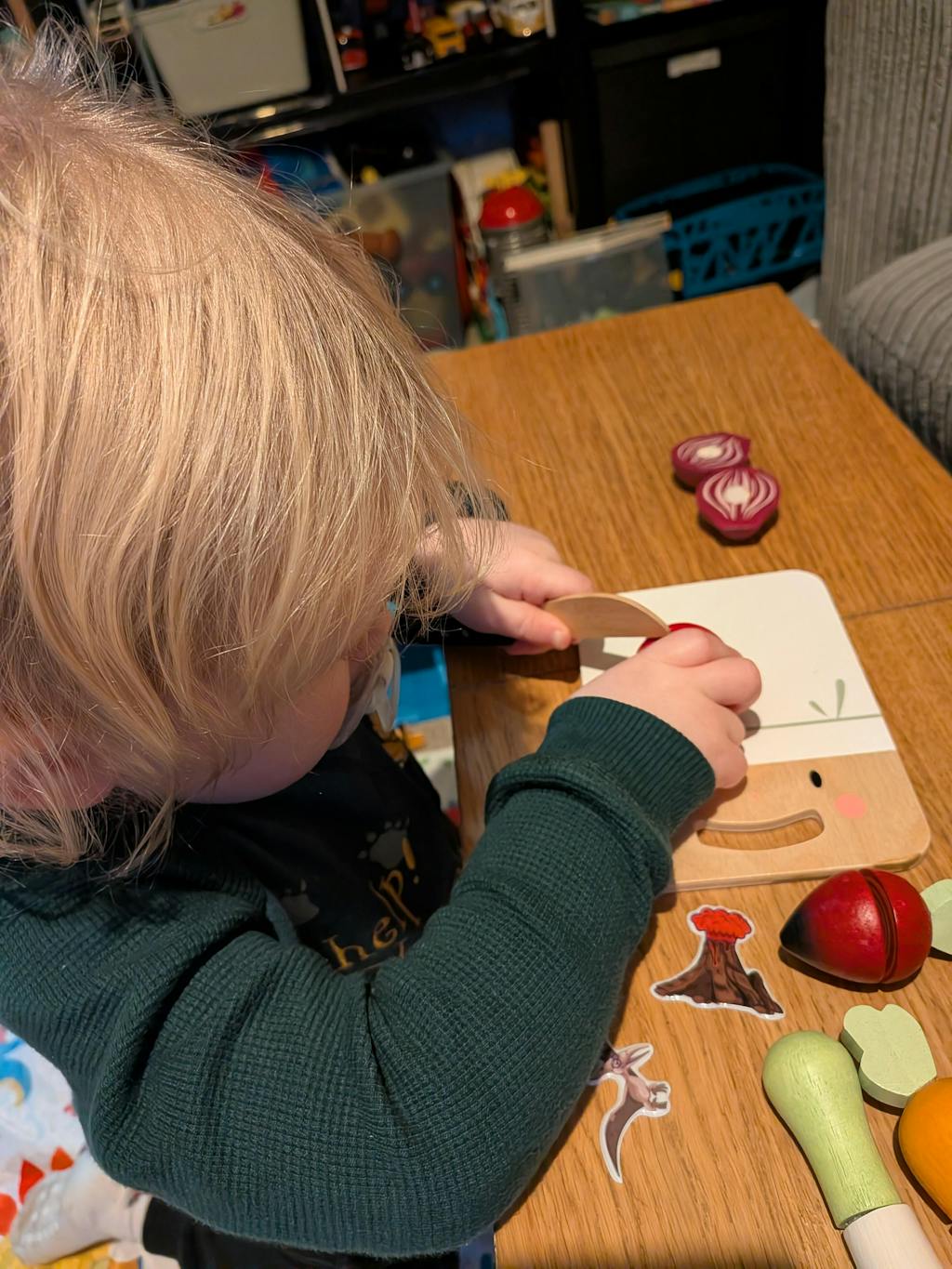 Get little chefs chopping with this Tender Leaf Toys Chopping Board Set—a sweet chopping board shaped like a mini chef, made from sustainable rubber wood and plywood. It comes with a wooden knife and a colourful selection of veg to “slice”: a carrot (3 pieces), beetroot (halves), tomato (halves), onion (4 pieces) and leek (3 pieces). Chop chop chop—perfect for role play, sharing, and building kitchen confidence.