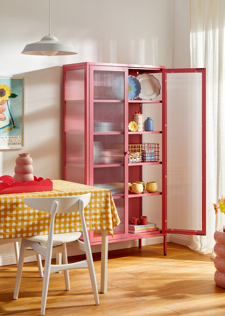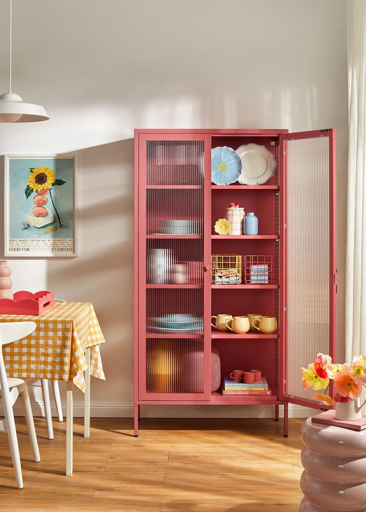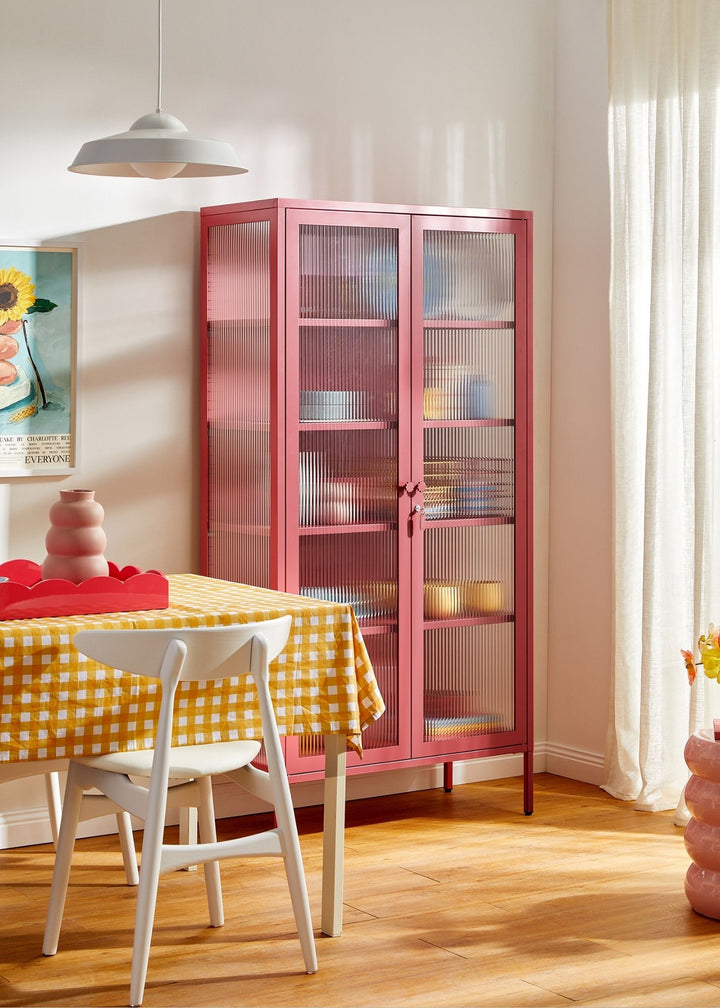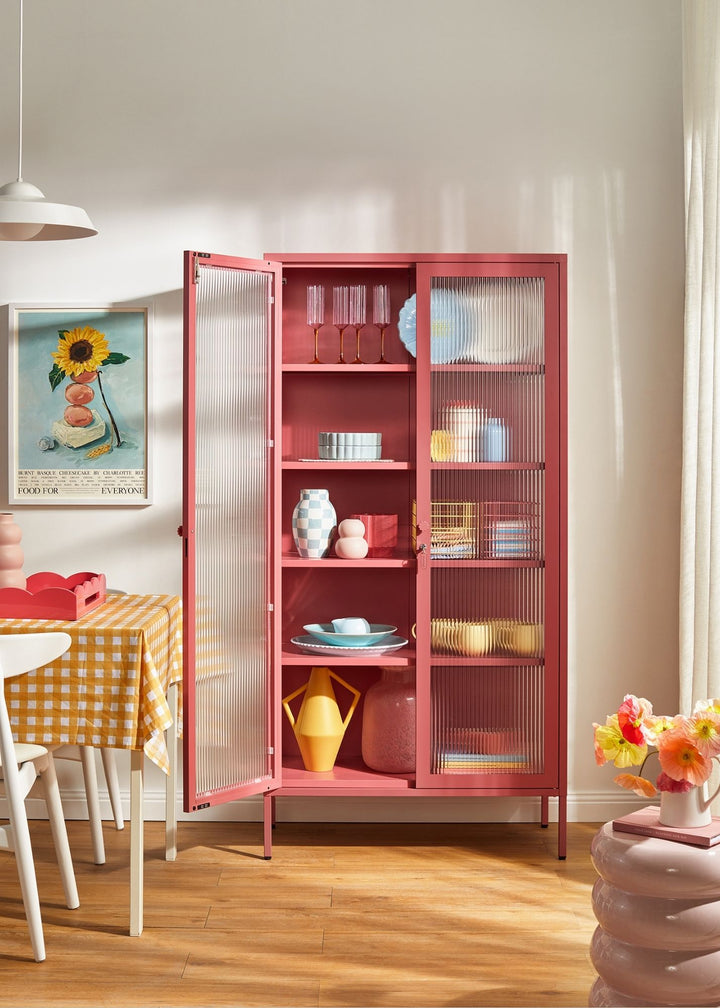 Got a thing for things? Curate your very own collection with our big, bold Collector. Fluted glass keeps your keepsakes safe, so you can protect your treasures while letting them shine. Pick your pop of colour, we'll bring the details: medallion handles, a custom enamel keyring and adjustable feet present your precious pieces in style.