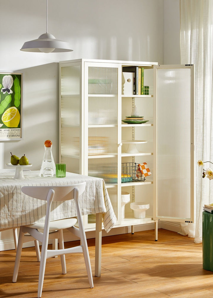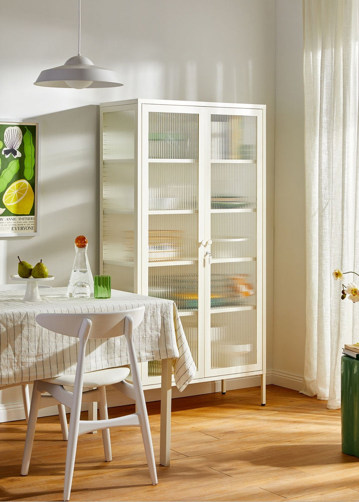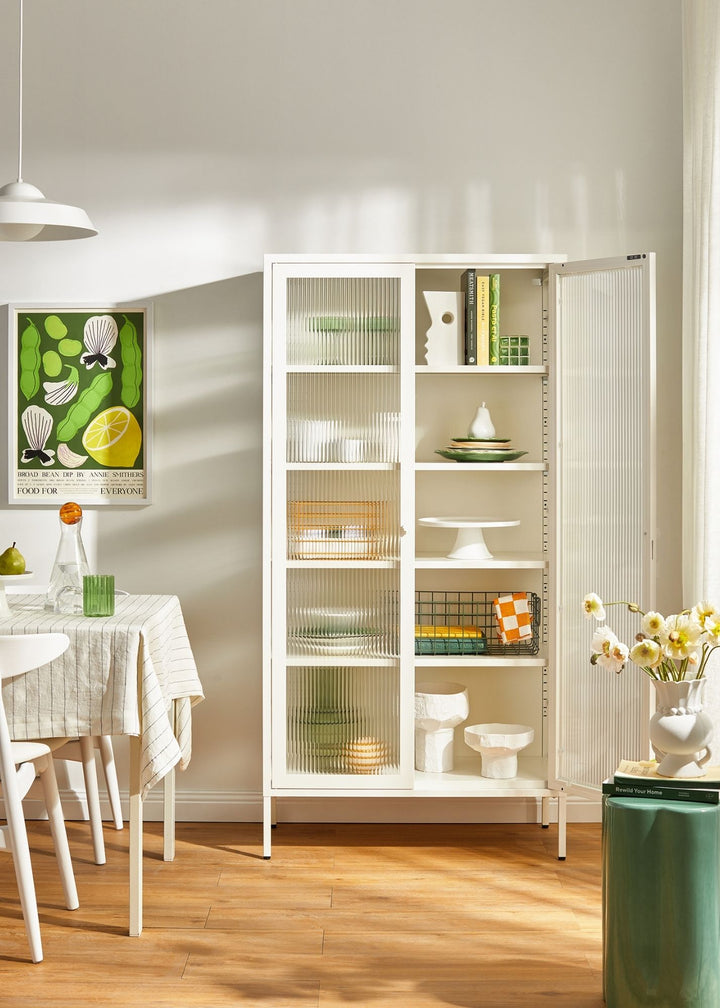 Got a thing for things? Curate your very own collection with our big, bold Collector. Fluted glass keeps your keepsakes safe, so you can protect your treasures while letting them shine. Pick your pop of colour, we'll bring the details: medallion handles, a custom enamel keyring and adjustable feet present your precious pieces in style.