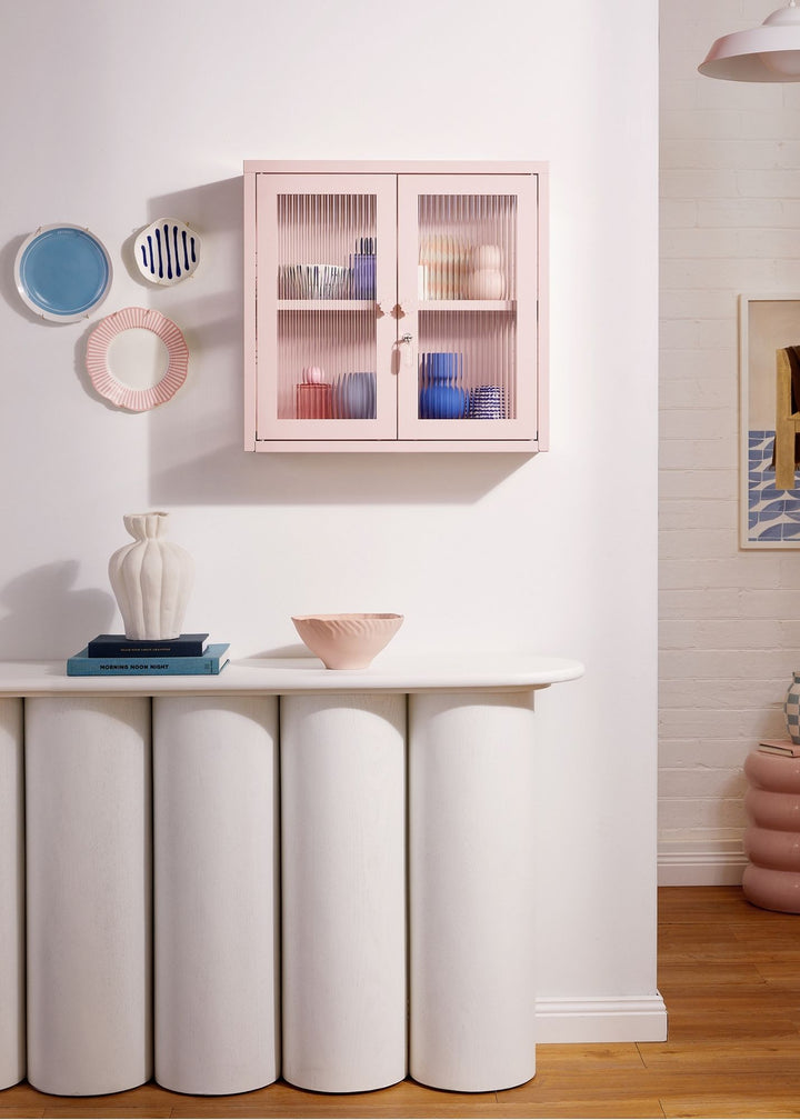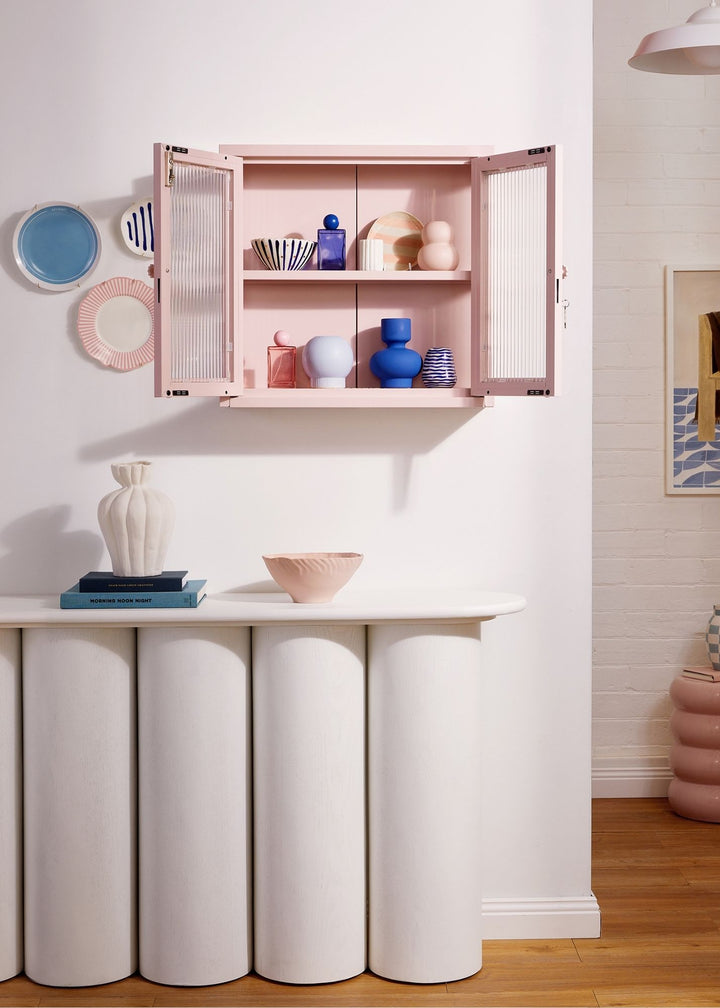 Petite and purposeful, The Kit is your vintage medicine cabinet reimagined! Wall-mounted and a little retro, she's ready to house everything from your keys to your serums to your teacup collection (cute!) With medallion handles and a custom enamel keyring, she's little and lovely and very, very useful.