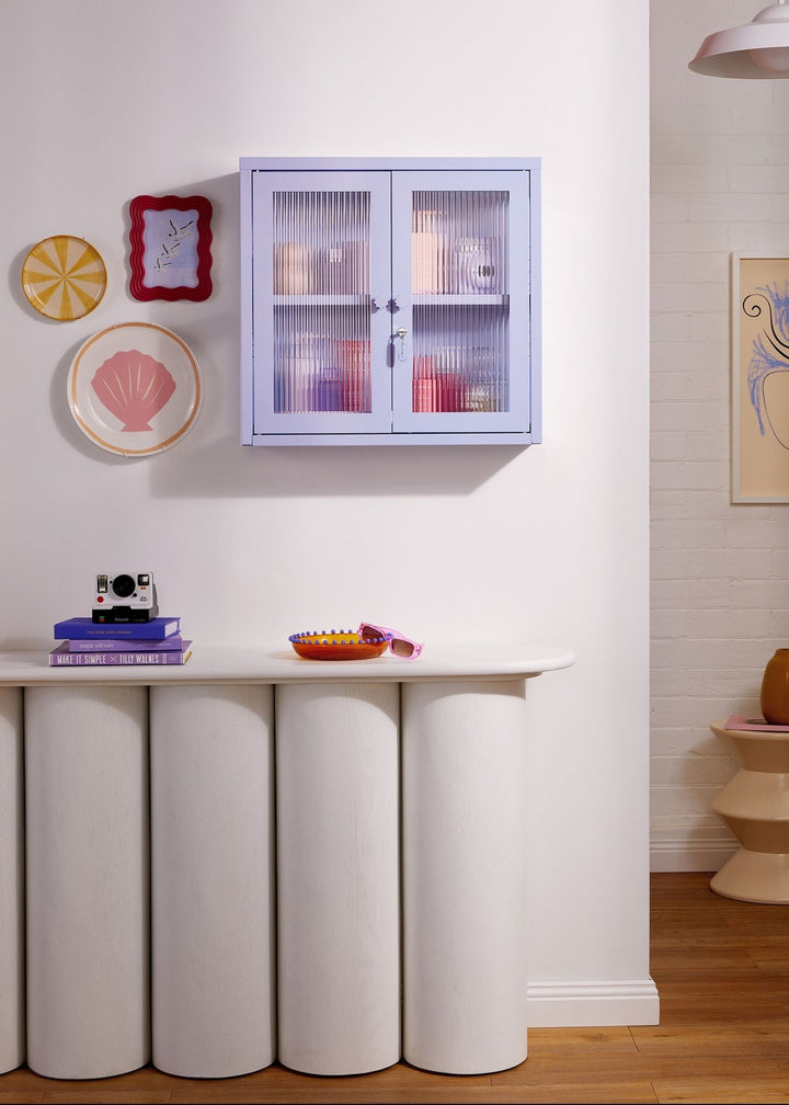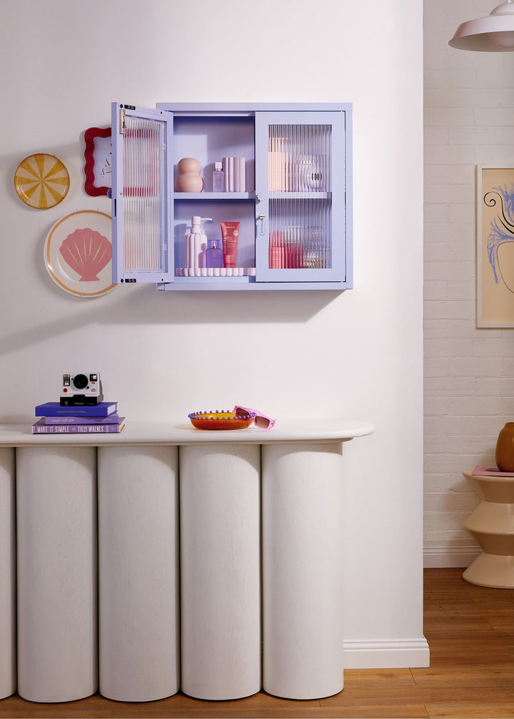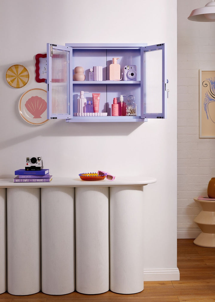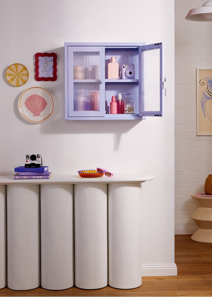 Petite and purposeful, The Kit is your vintage medicine cabinet reimagined! Wall-mounted and a little retro, she's ready to house everything from your keys to your serums to your teacup collection (cute!) With medallion handles and a custom enamel keyring, she's little and lovely and very, very useful.