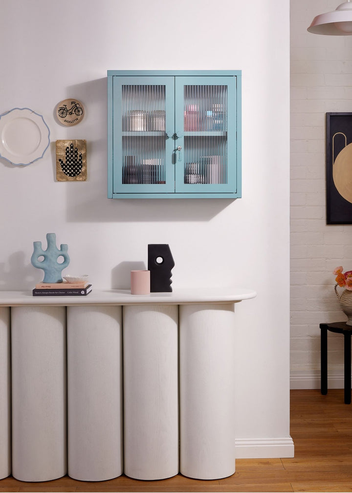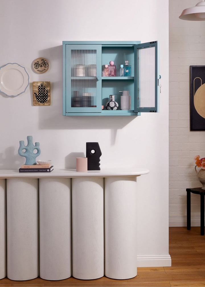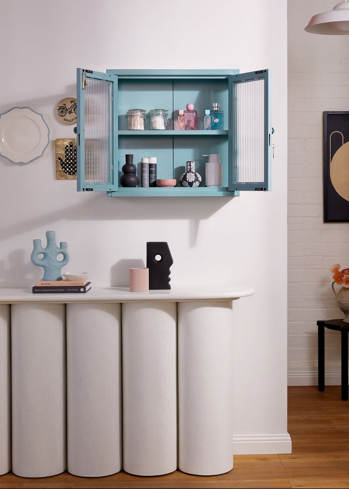 Petite and purposeful, The Kit is your vintage medicine cabinet reimagined! Wall-mounted and a little retro, she's ready to house everything from your keys to your serums to your teacup collection (cute!) With medallion handles and a custom enamel keyring, she's little and lovely and very, very useful.
