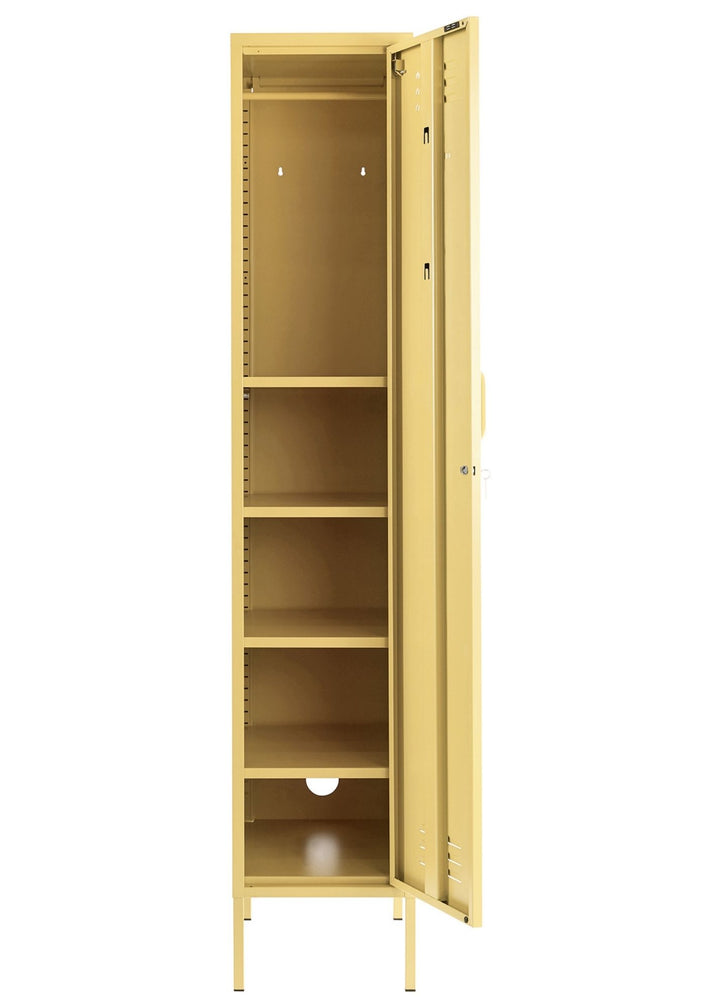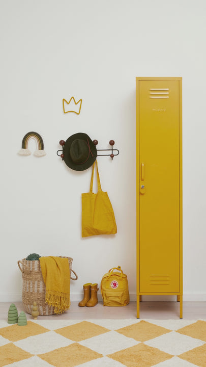 The Skinny locker is tall and slender. It's Mustard Made’s signature locker and the one they dreamed up first! She'll help you keep your stuff neat and tidy. You'll be amazed at how much you can fit inside! Standing alone or paired with friends, The Skinny is pretty, practical and cool.