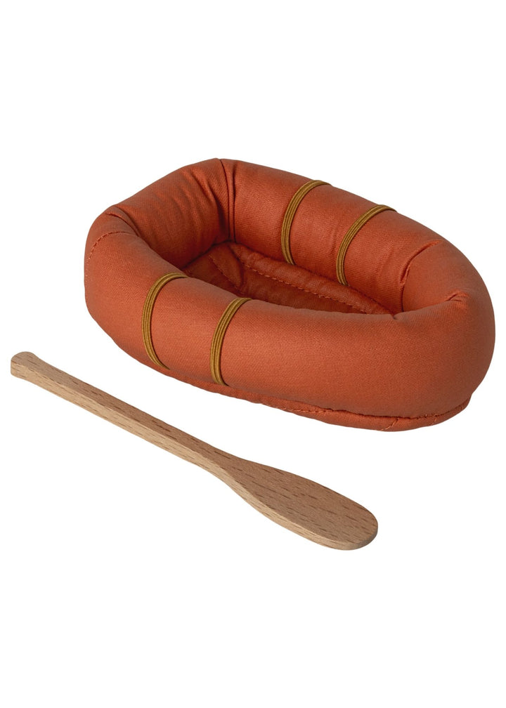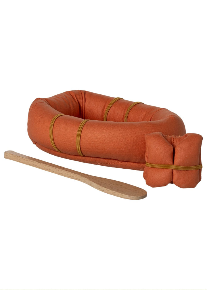 This little rubber boat is made of fabric and comes with life vest and paddle. It is not waterproof, so you have to imagine floating on the water. Combine it with the hiker mice and other outdoor accessories to extent the story.