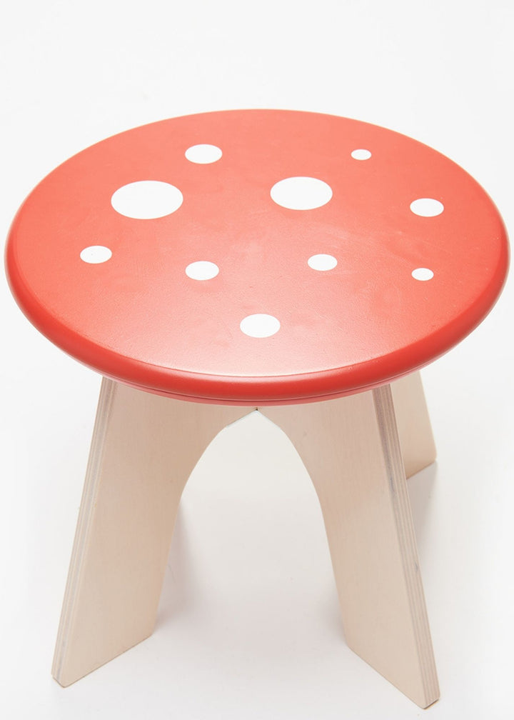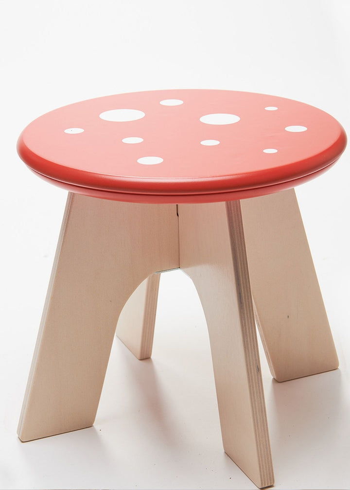 A sturdy solid wood stool painted to look just like a woodland toadstool. With four little legs, this stool is a great addition to the nursery along side our other animal chairs and play tables.