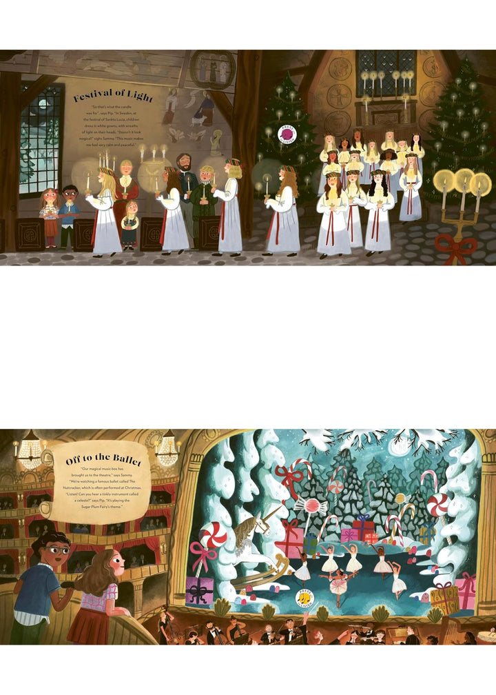 Join Pip and Sammy as they travel the world, listening to some of the most famous pieces of Christmas music and meeting the composers who created them. From the exciting Sleigh Ride, to the reflective Sankta Lucia in Sweden, to the exultant Hark! The Herald Angels Sing, sound clips bring orchestras, choirs and wassailers into the room at the touch of a button. A perfect first introduction to the sounds and songs of Christmas.