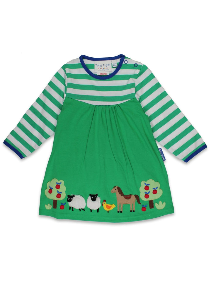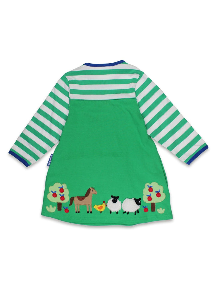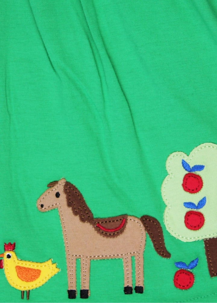 Get ready to frolic through fields with our Organic Hillside Applique Dress! Made from organic materials, this dress is not only environmentally friendly but also features playful applique farmyard animals on the bottom edge. With sizes ranging from 6 months to 6 years old, your little one will be the most stylish and eco-conscious kid on the farm!