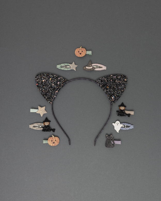 Embrace your inner feline with these gorgeously glittery cat ears! Super lightweight and comfy, these are the ideal finishing touch for any meow-velous moggie this Halloween!
