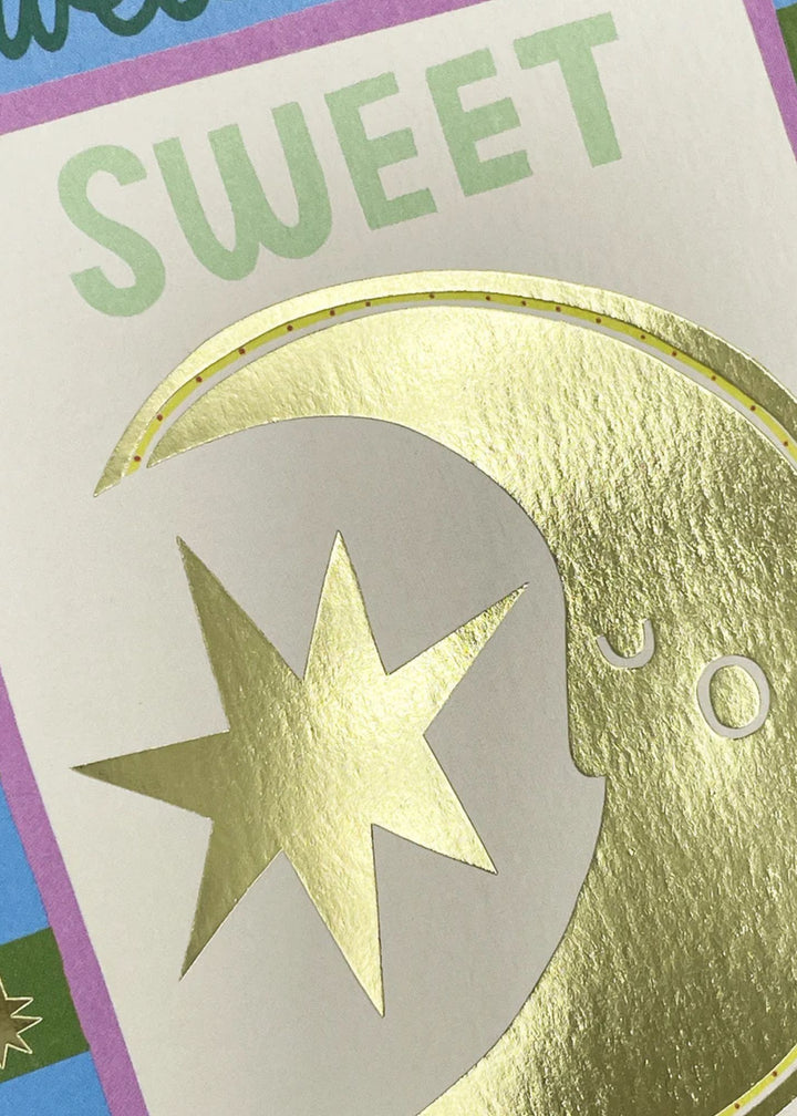 A radiant new collection inspired by the golden glow of summer days and the magic of moonlit nights. Featuring a vibrant palette, dreamy motifs, whimsy patterns and illustrations of sun, moons and sea shells. The cards are finished with a luxe gold foil where the design captures the warmth and freedom of the season. This collection is a celebration of the beauty of everyday moments with a touch of celestial charm. Size is 114mm x 162mm with a lilac envelope.